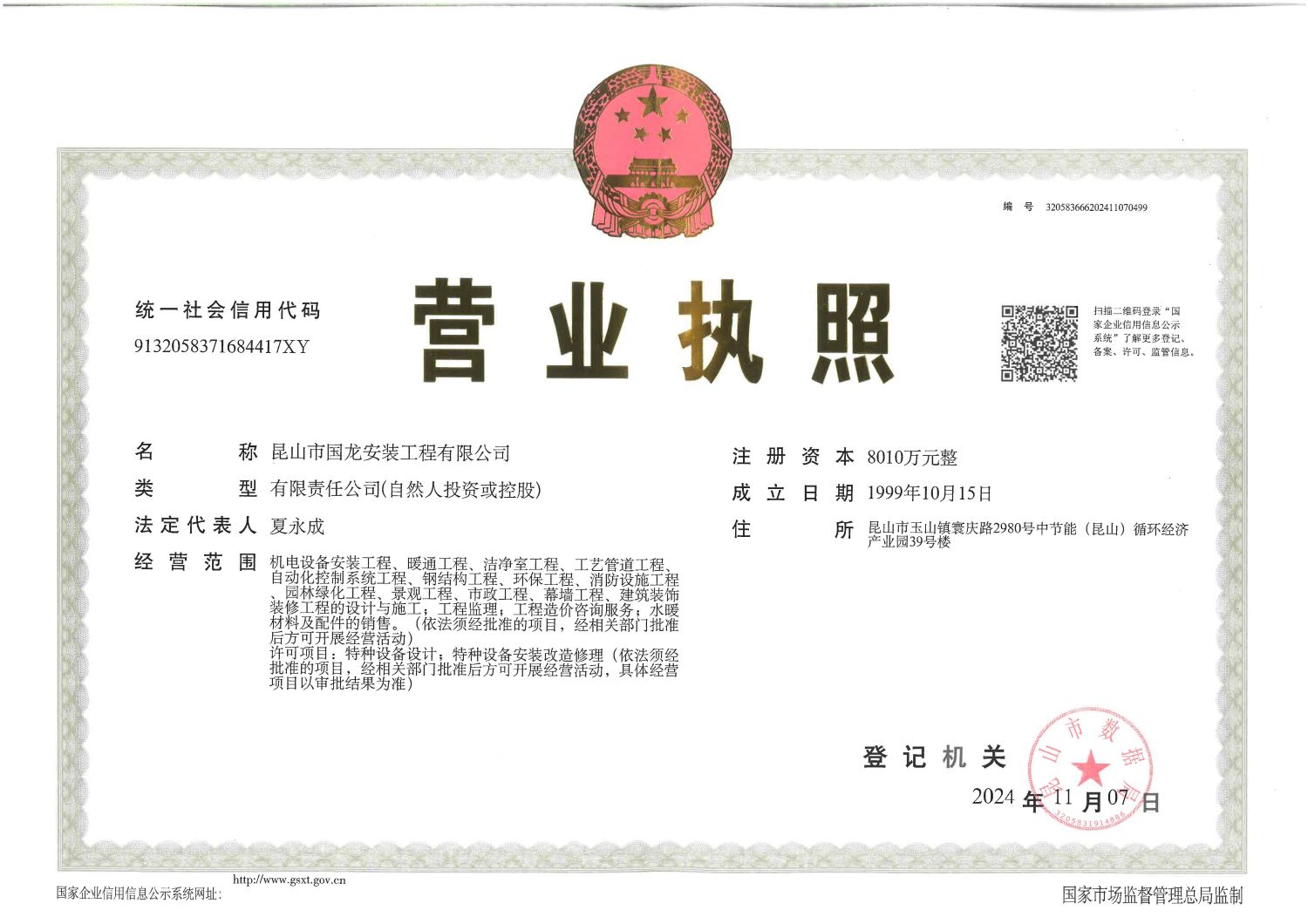 昆山市國龍安裝工程有限公司 該企業(yè)已通過營業(yè)執(zhí)照審核